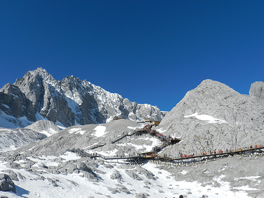 第五站是玉龙雪山景区,大家乘座缆车登上玉龙雪山海拔4000多米最高点,第一次看到南国壮丽神奇的雪山雪景。紧接着游览了蓝月谷,她像一轮蓝色的月亮镶嵌在玉龙雪山脚下,澄澈见底已经不足以形容她的纯净。而大型实景演出《印象丽江》,则是以玉龙雪山为背景,在海拔3100米世界上最高的演出场地上,用舞蹈演绎云南16个民族的文化习俗。演出场面气势恢宏而又极具民族特色,既体会到了生命的真实与震撼,又有着心灵的荡涤和灵魂的穿越,一种从未体验过的天人合一之感充斥心胸。